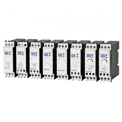 Principais características Relés Protetores RPW Relés Temporizadores RTW Novos Protetores Eletrônicos contra falta de fase RPW FF, sequência de fase RPW SF e falta e sequência de fase em um único produto RPW FSF. Temporizadores RTW de até 30 min com 9 funções de temporização...Relés Temporizadores, Protetores e de Níveis