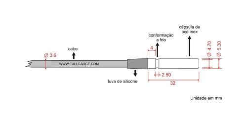 Sensor de temperatura revestido por uma cápsula de aço inoxidável AISI 316 L, com conformação a frio sobre luva de silicone, que proporciona sua total vedação, além de oferecer robustez e proteção contra radiações. Resistente à água, o RollerBag foi desenvolvido e produzido pela Full Gauge para o uso exclusivo em seus controladores, e apresenta, impresso em seu cabo, o número de lote ao qual pertence e a data de sua fabricação, atestando, de forma clara e visível, sua procedência.